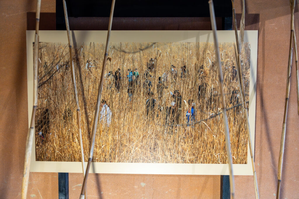 ヨシ原を皆さんで管理(ヨシ刈り)している写真だと思います。