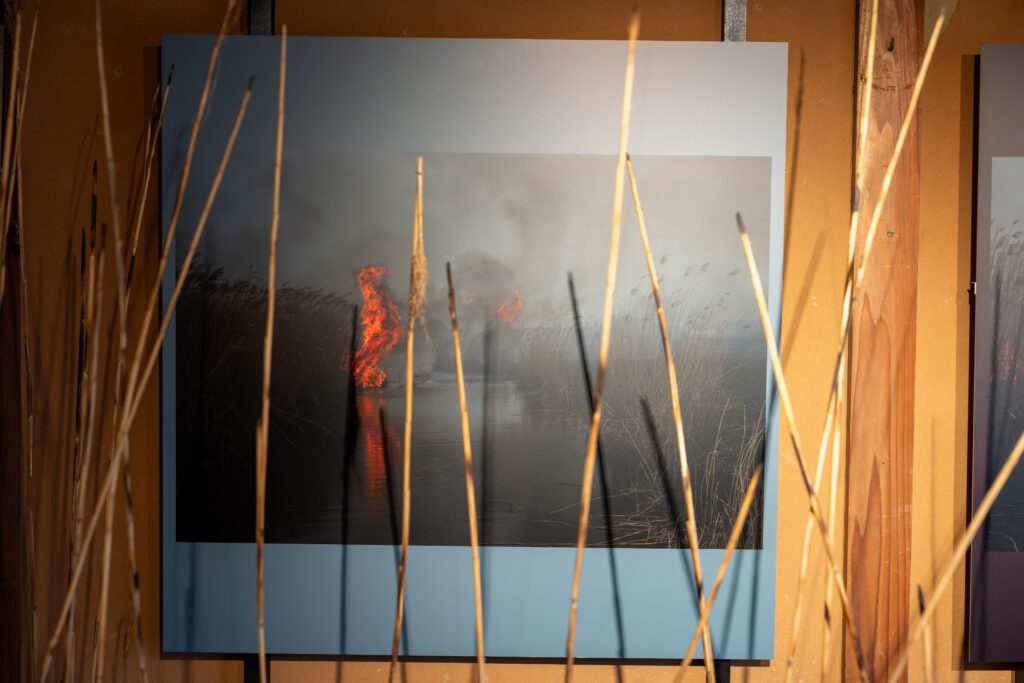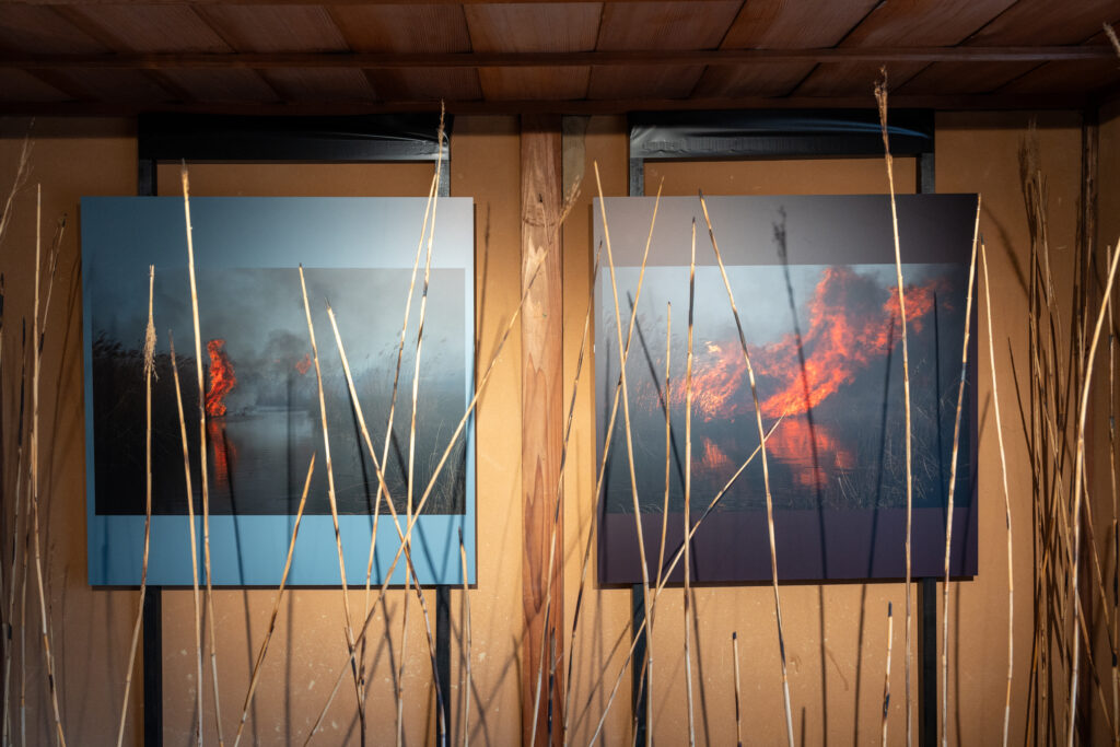 窓はヨシを焼いた炎が立ち上っている様子でしょうか?