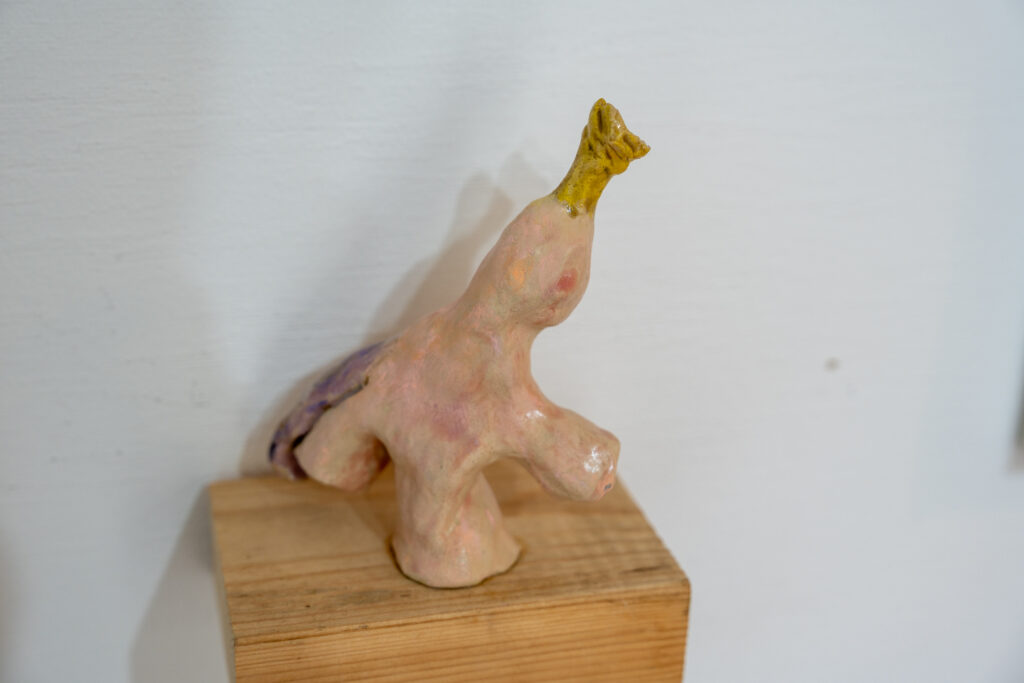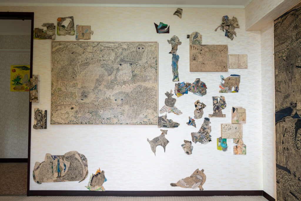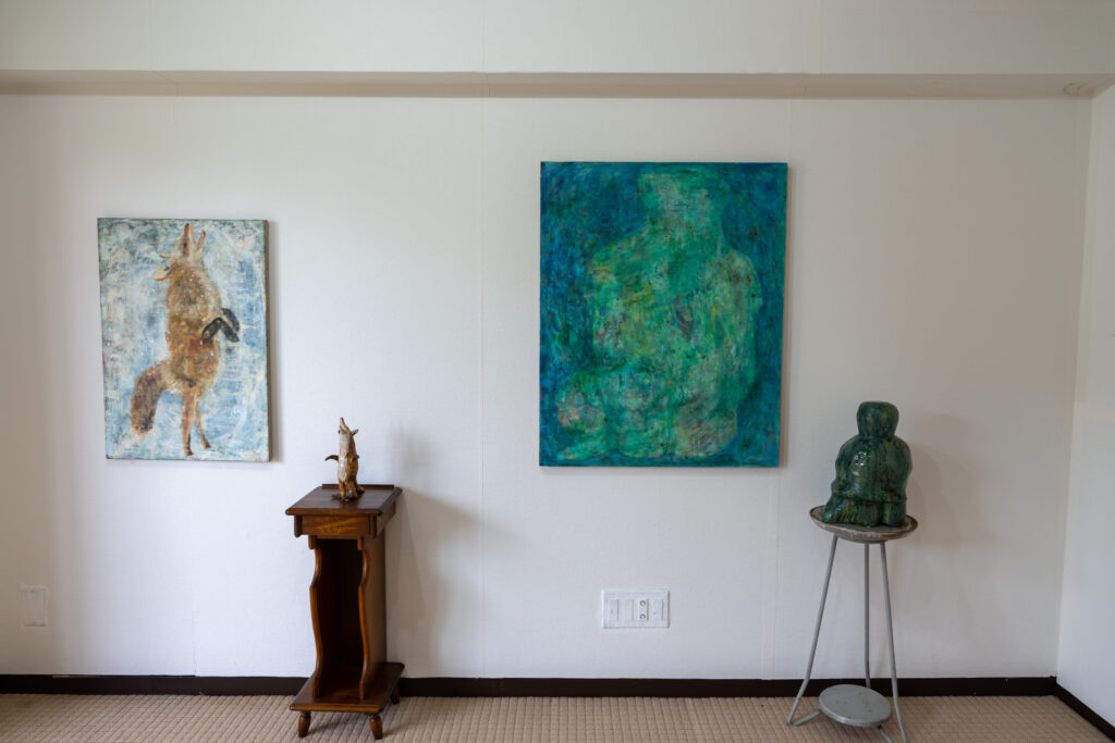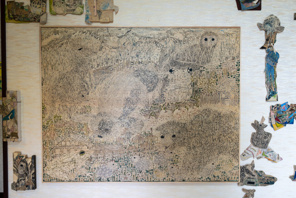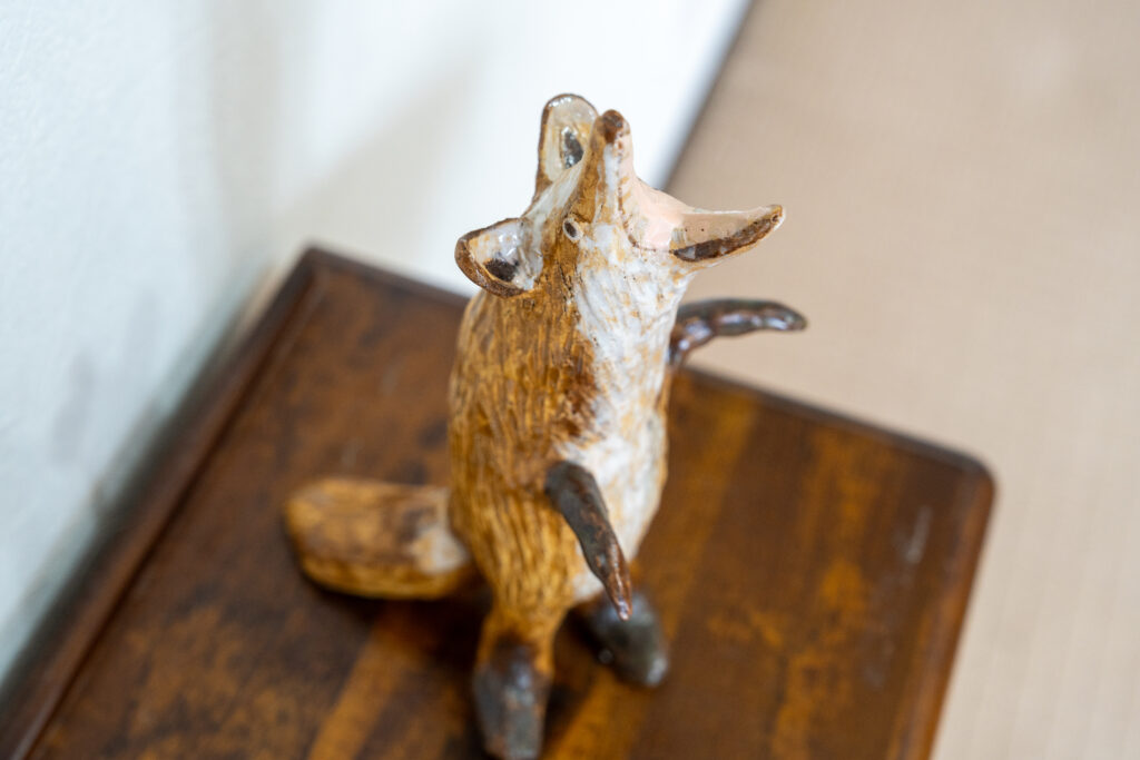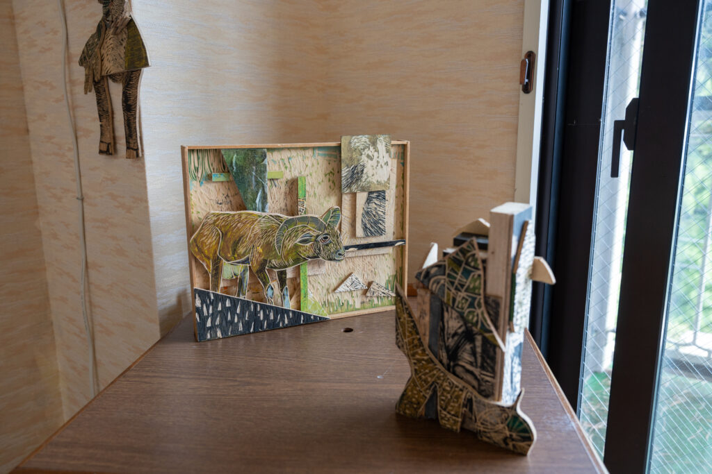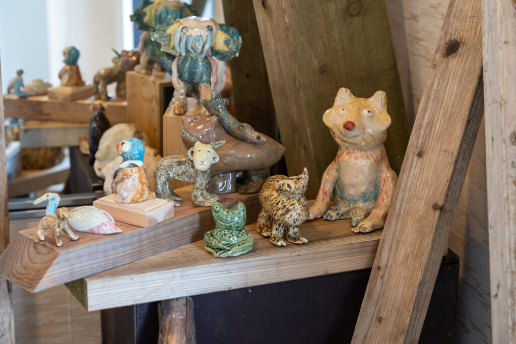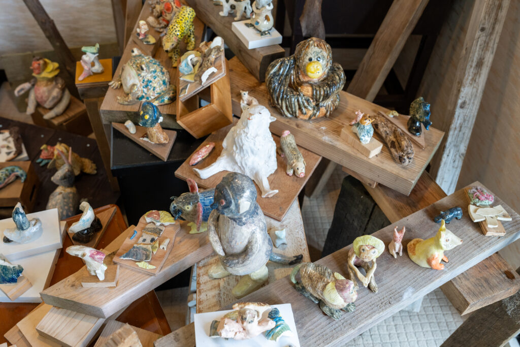 作品たちは板の彫刻、絵画、立体物と様々です。モチーフに動物が多いのは、匿名性があるからとのこと。色々な方法で作られた様々な動物を見るのは楽しいですね。