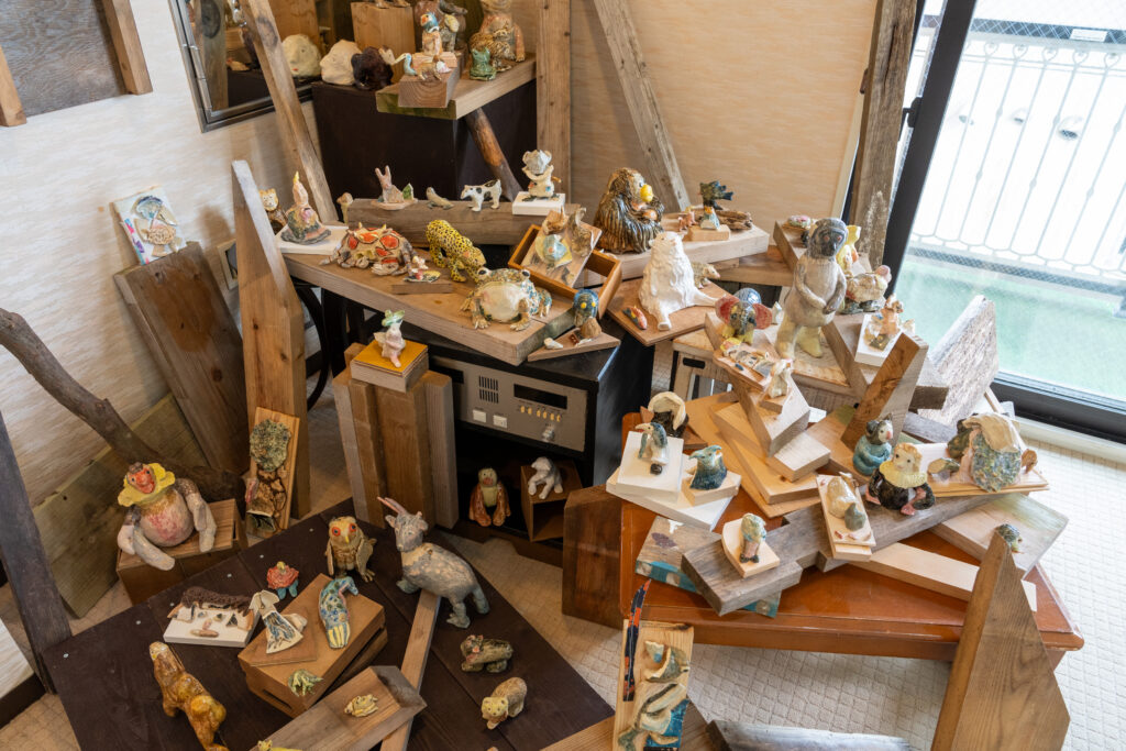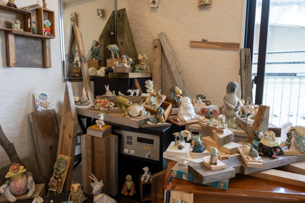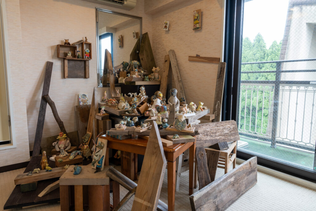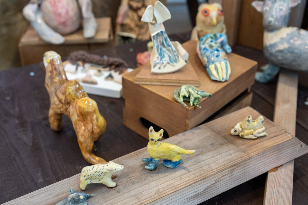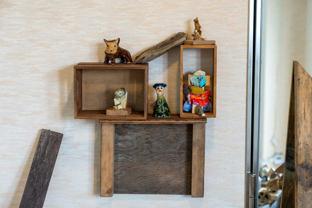 流々転々は様々なものが移り変わること、命が生まれ変わっていくこと。この言葉の通り、一度作った作品を素材にして新しい作品を生み出しているとのことです。一度作ったものを解体するのは勇気がいりそうですが…何度も作るうちに自分の思いが足されて、思い入れが強くなっていきそうですね。流々転々を繰り返す中で、もしどうしても解体できない作品が出てきたら、それが完成した作品になるのかもしれません。。(私の想像です)