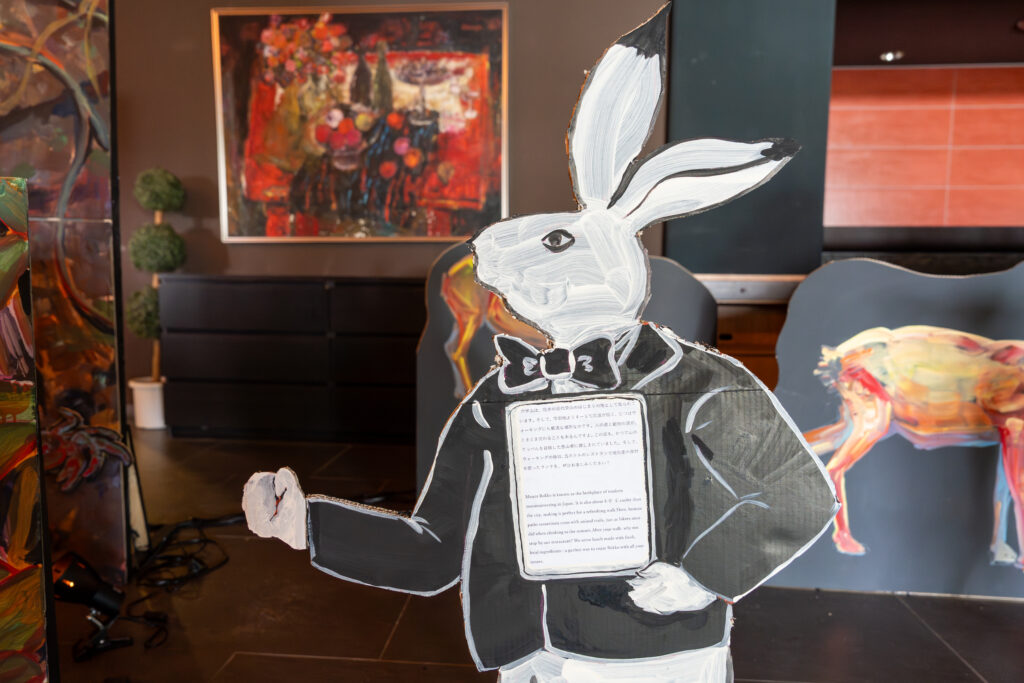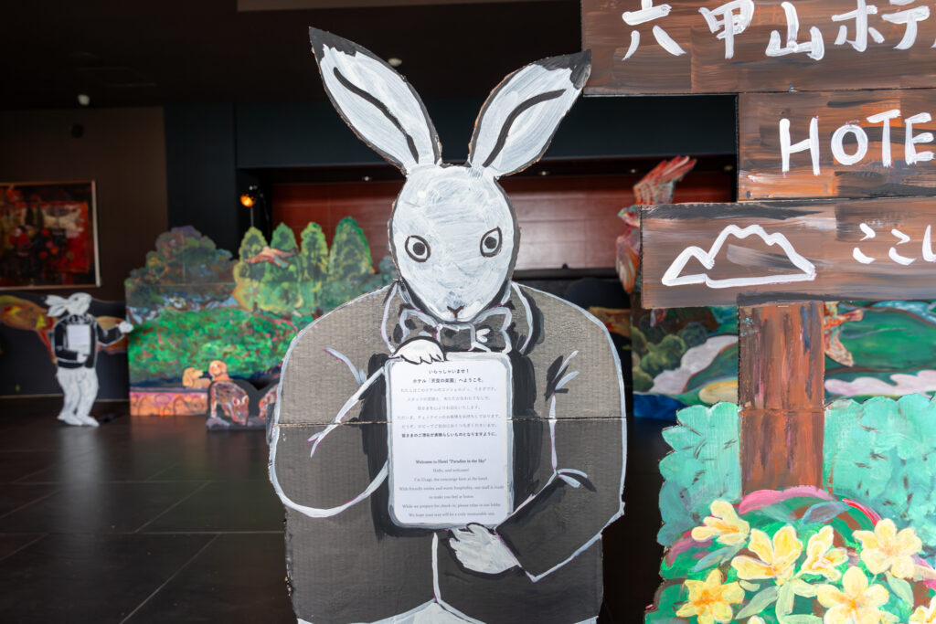 旧六甲スカイヴィラのエントランスではウサギのコンシェルジュが出迎えてくれます。建物に入った瞬間から、「あなたとは分かり合えないかもしれません」の世界となっています。