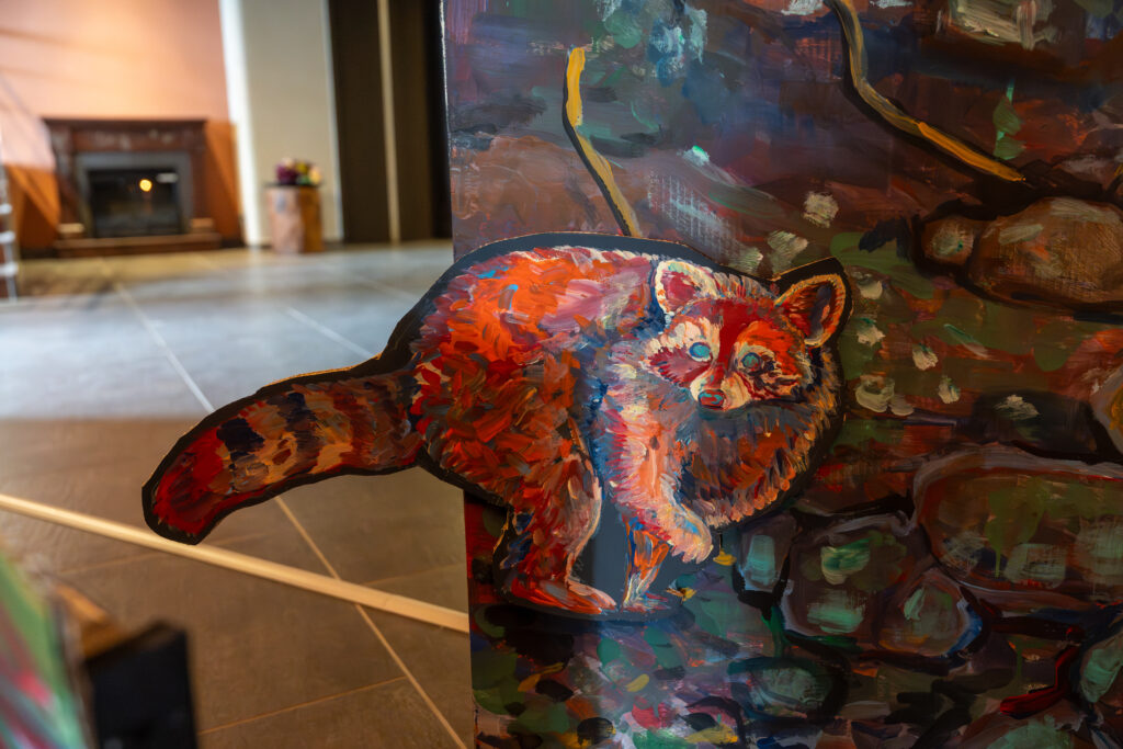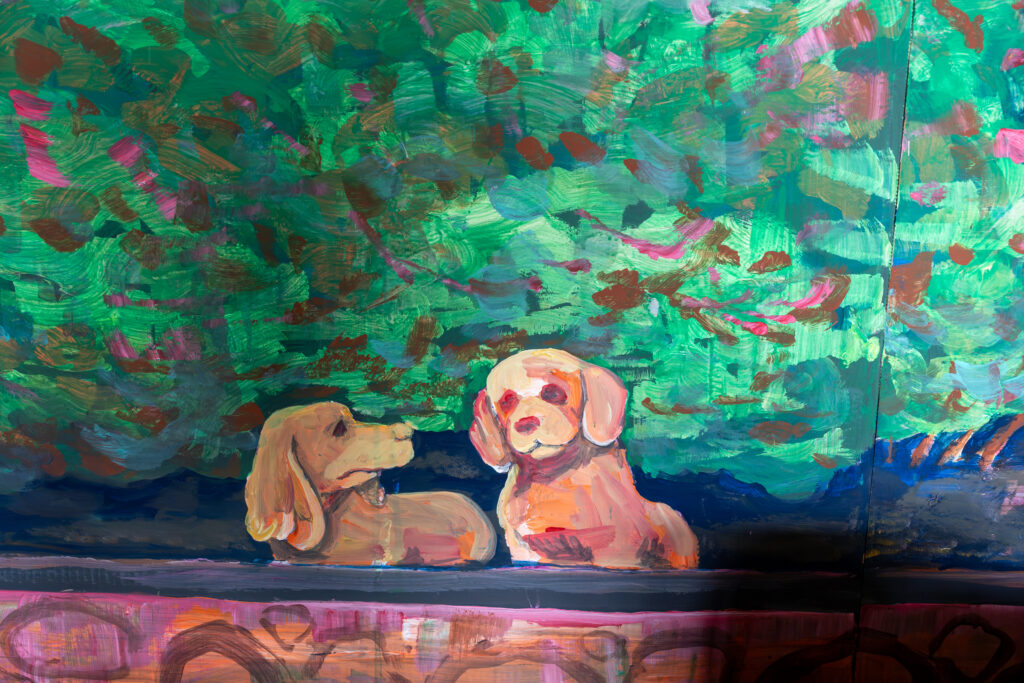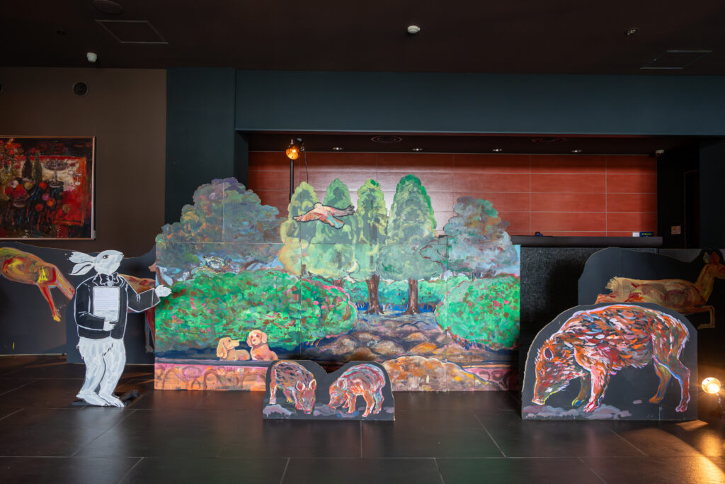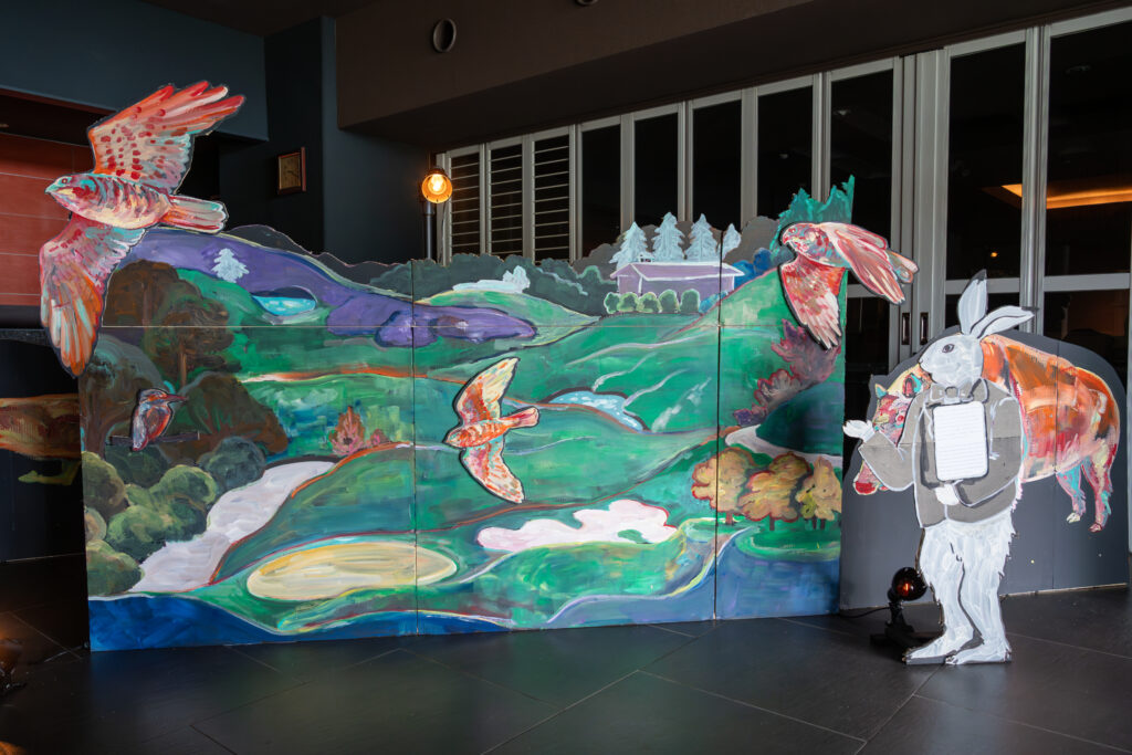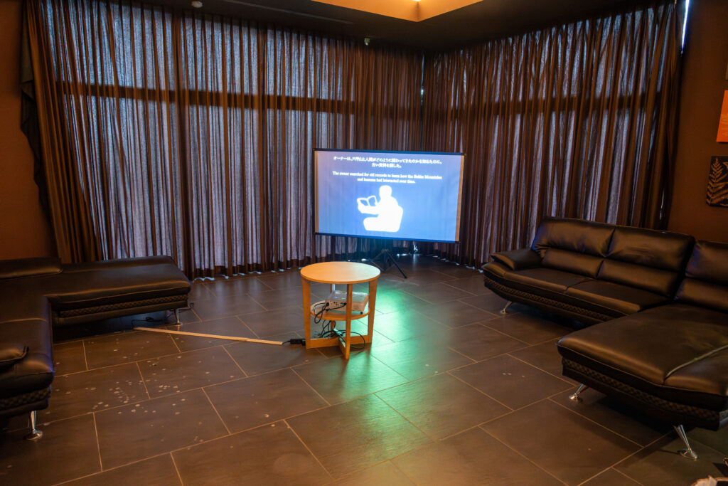 このホテル(天空の楽園)はかつて人間のオーナーによって管理されていたそうです。ある日ホテルにウサギがやってきてオーナーと過ごすようになります。人間のオーナーがいなくなった今、ウサギがホテルを管理しているとのこと。というわけで、ウサギのコンシェルジュが出迎えてくれるわけです。ホテルの営業が終了した旧六甲スカイヴィラ、人の気配を感じない雰囲気がこの作品を際立たせているようでした。また、人間の時代が終わって動物の世界が来たような、そんな気分にもなれます。