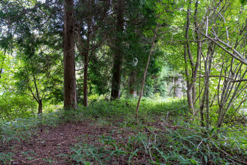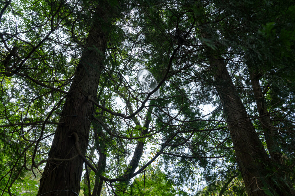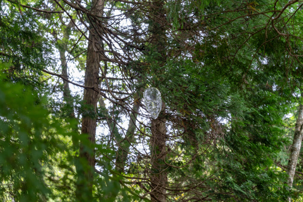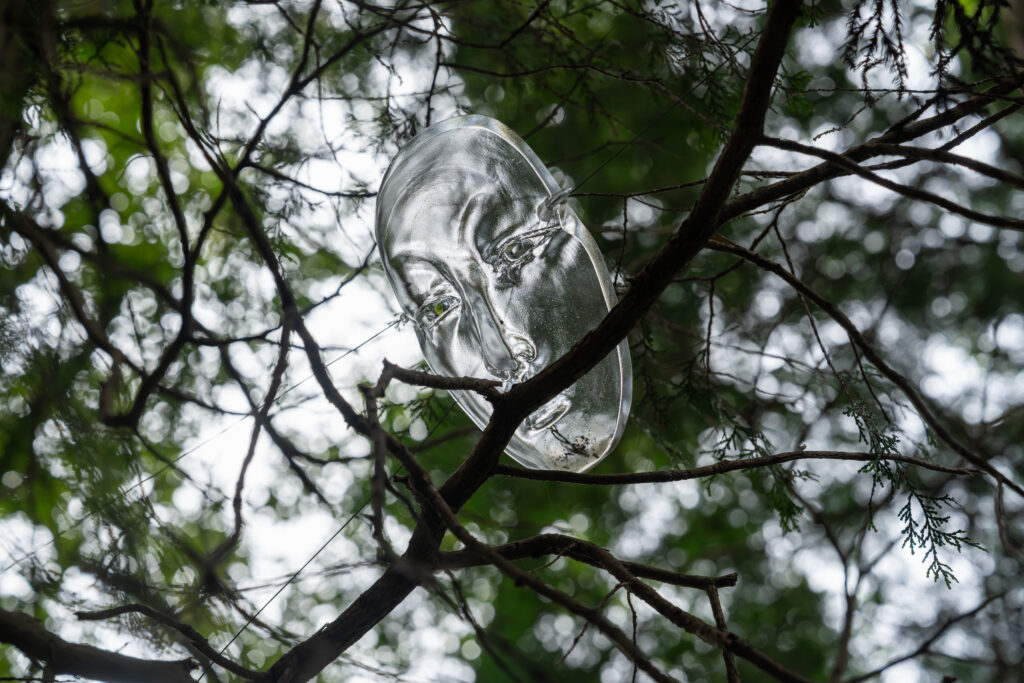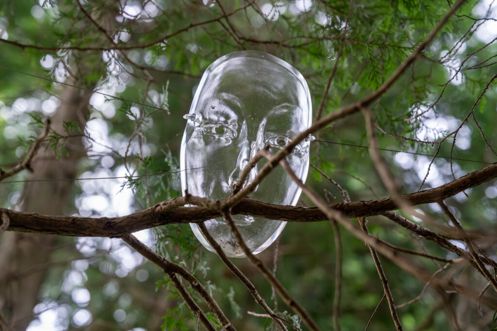ガラスでできた能面が木々の間に浮かんでいました。「おほやけ」は古語で、現在の「公」と同じ意味みたいです。お面は公の自分、素顔はプライベートの自分。でも、お面がガラスでできているので、公もプライベートも気にする必要はないと伝えてくれているのでしょうか…?
