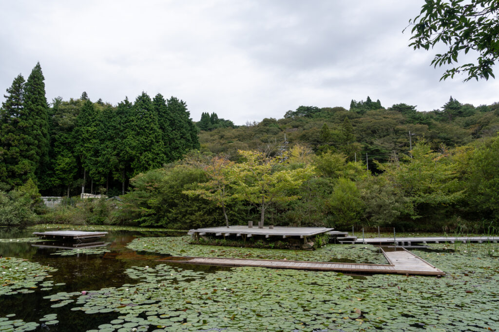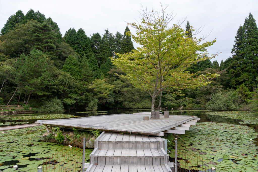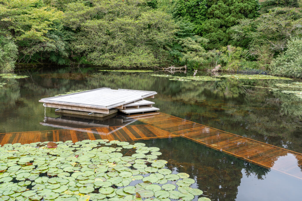 ROKKO森の音ミュージアムの近くに新池という小さな池があります。この新池にもアート作品が展示されていました。