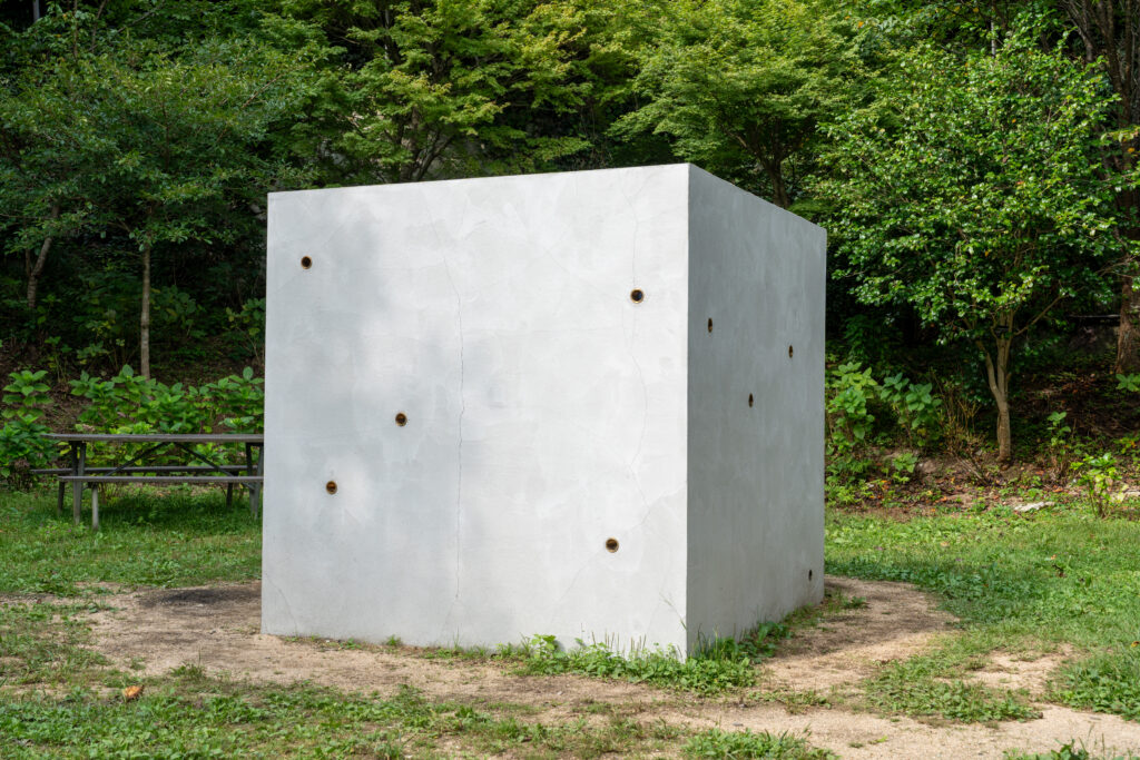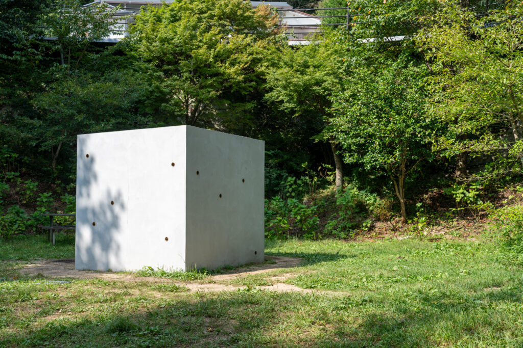 六甲高山植物園に設置されているfernsehenは立方体の物体です。この立方体には何個も穴が開いていて、これらの穴を覗いて楽しむアートになっています。同じものがドイツのベルリンにも展示されているそうで、2つのfernsehenが干渉しあっている?ような面白さもあるようです。