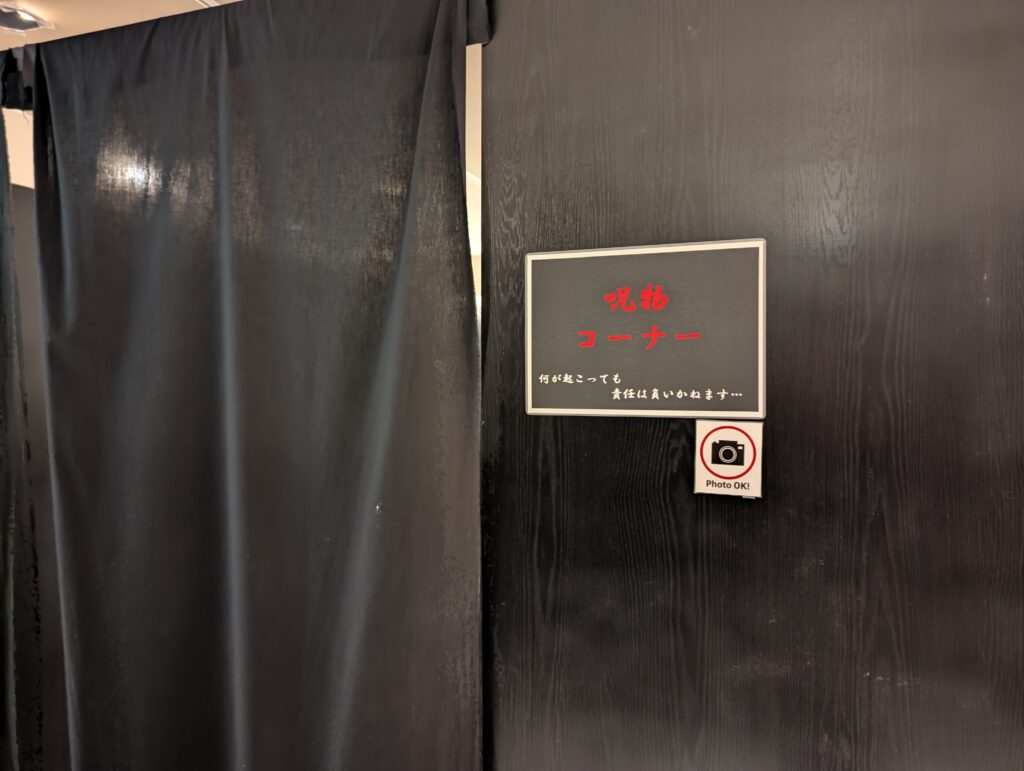 心霊写真コーナーは撮影禁止。心霊写真はフィルムか古いデジカメで撮ったものが多そうでした。最新のミラーレスで撮影したパッキパキの心霊写真はまだ少ないのでしょうか・・?