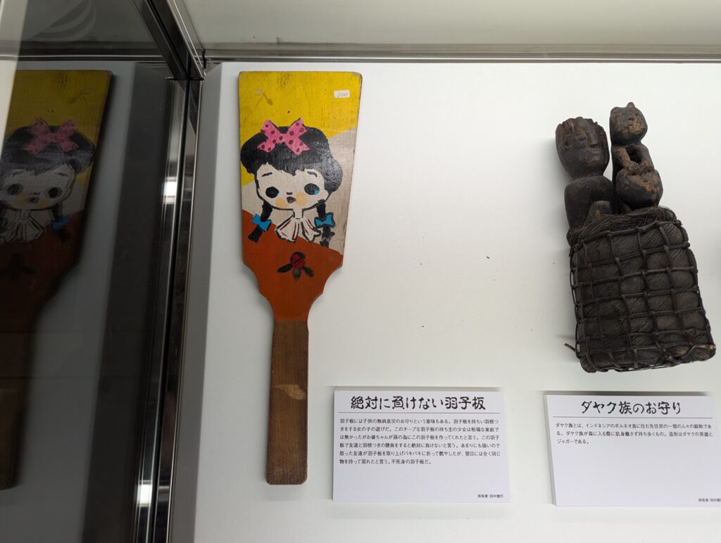 他にも様々な呪物が展示されています。中には、持ち出し禁止と書かれたものや未祓いなんてのも。「絶対に負けない羽子板」のような、良い呪物もあるようです。