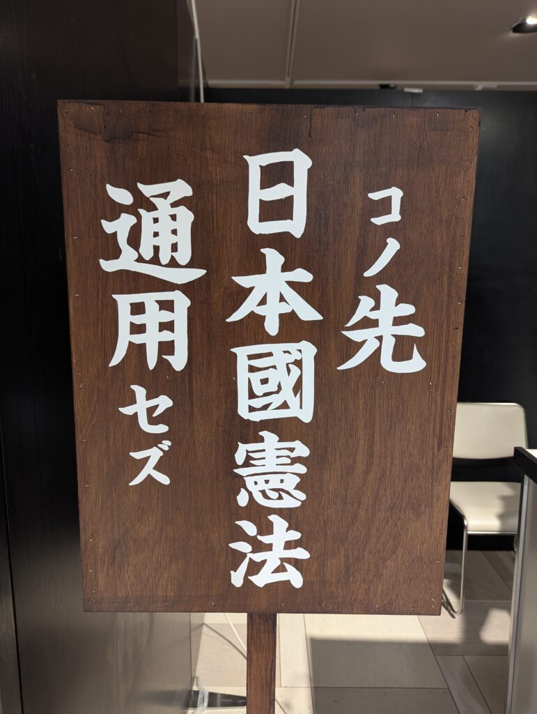 入口には「コノ先 日本國憲法 通用セズ」の看板。コワイ。