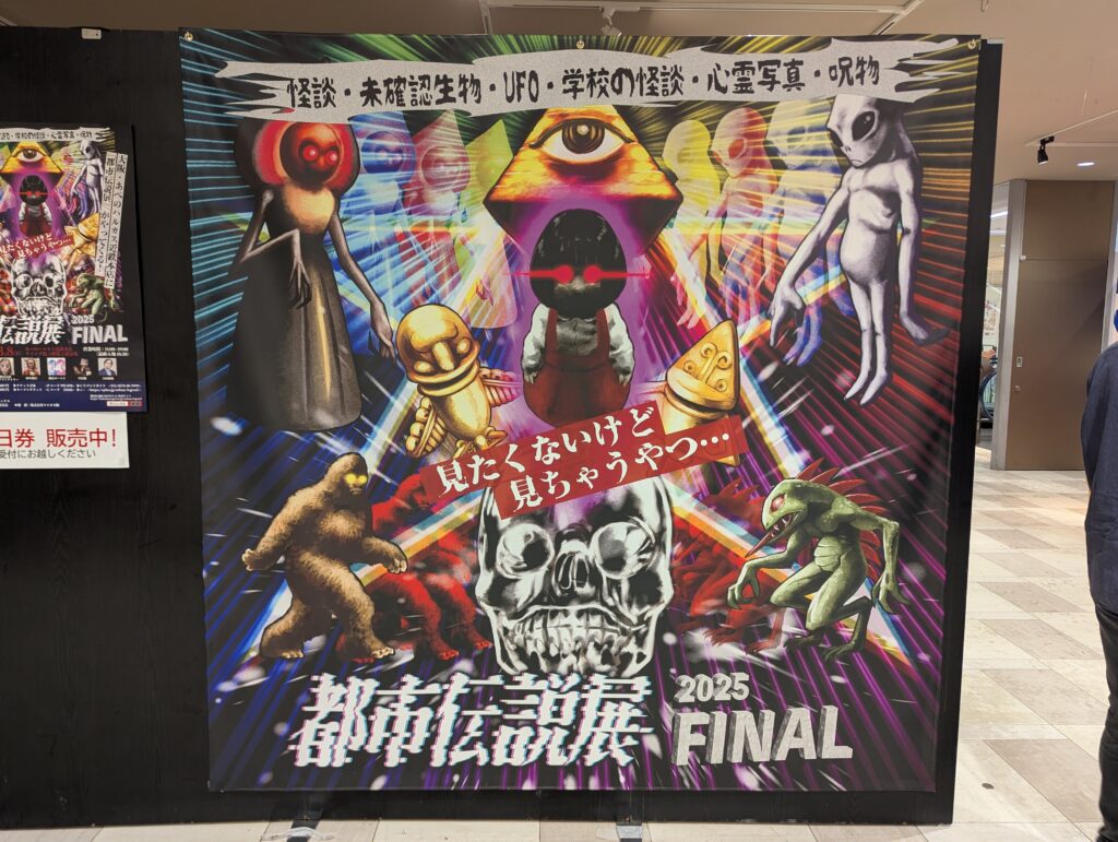 あべのハルカスでやっていた「都市伝説展 2025 FINAL」に行ってきました!怪談、未確認生物、UFO、学校の怪談、心霊写真、呪物と盛りだくさんの展覧会となっています。色々な都市伝説がパネルで解説されていて、本物の呪物も見れる、貴重な体験ができました。